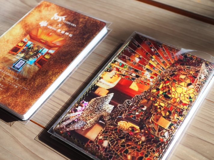 さらに、豊國神社と名鉄ホテルグループでしか手に入らない、限定デザインの「ステンドグラス御朱印帳」も販売いたします。表紙にステンドグラス甲冑の輝きをあしらった、プレミアムな一冊です。こちらは「甲冑が展示されている期間中のみ」各ホテルで販売される限定品です。